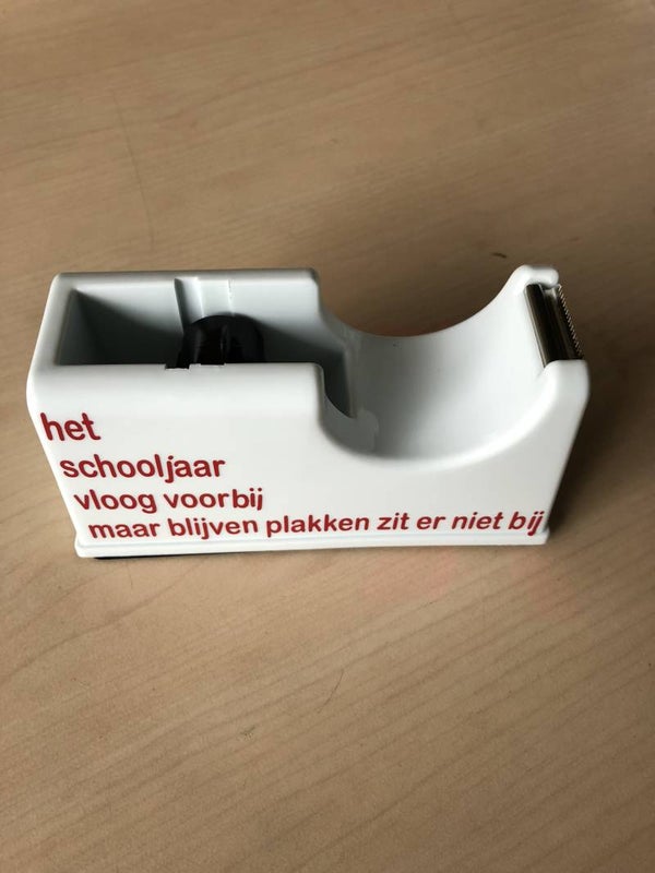 Plakband houder Wit met leuke Sticker tekst Juf/Meester